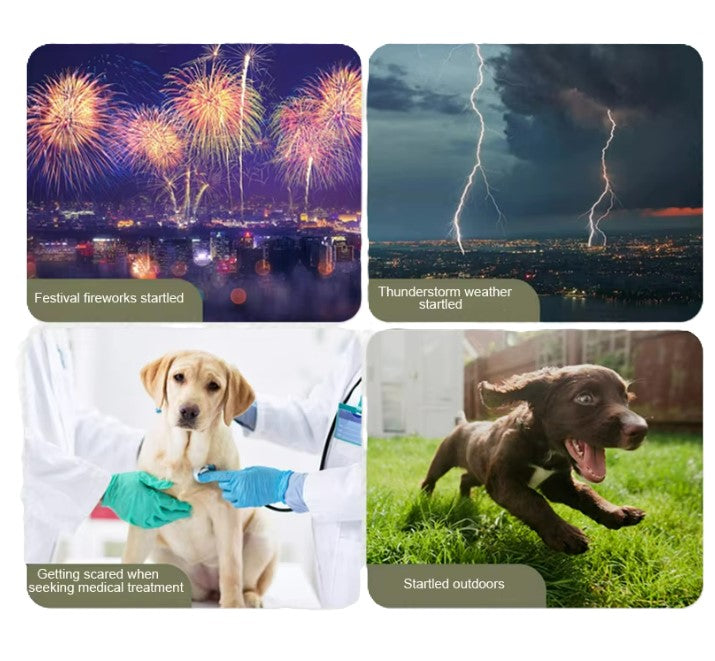 Apply to those situations - thundering noise, fireworks, veterinarian check, car carriage, unknown barking and etc.