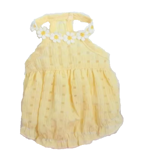 With daisy chain neck band and elastic bottom of skirt that gives it a soft look