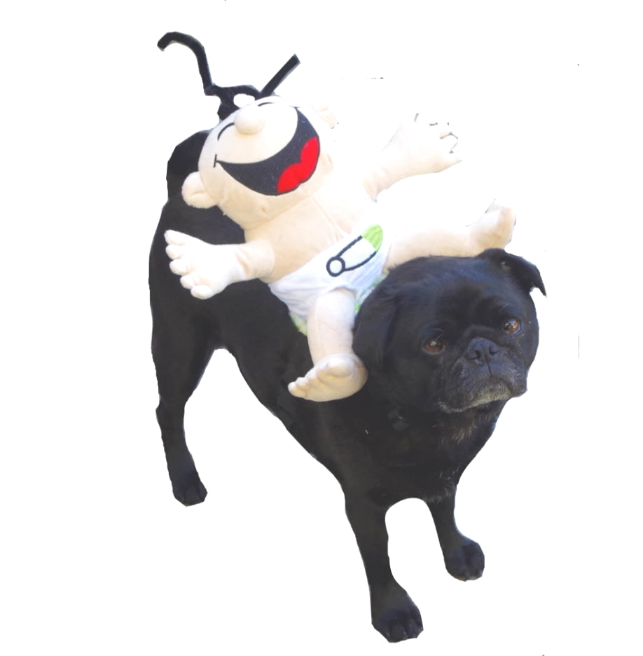 The baby features curly black hair and a nappy complete with an embroidered safety pin