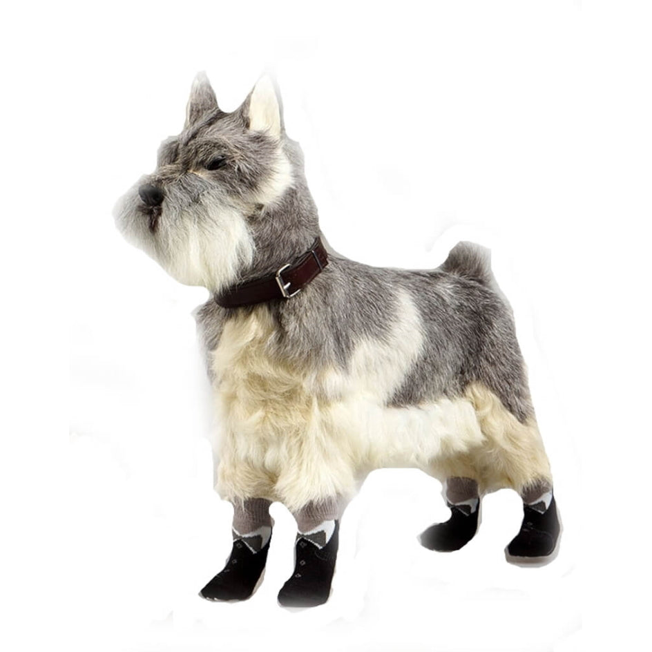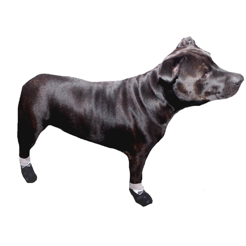 Set of four soft and stretchable doggie socks with skid-free rubber pads on the base of each sock.