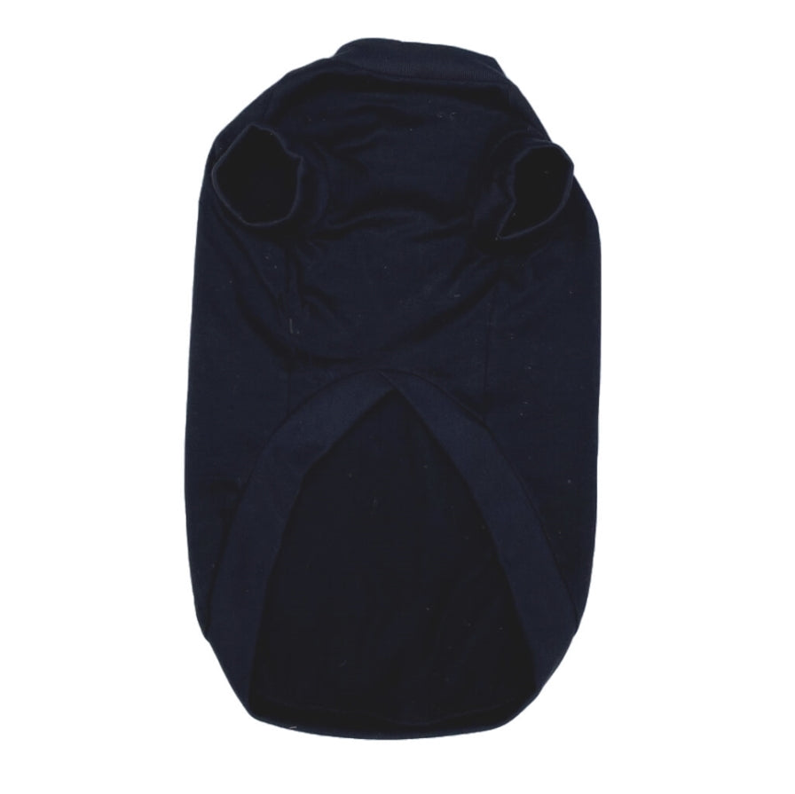 This dog t-shirt is sleeveless with rib trim at the sleeve and hem