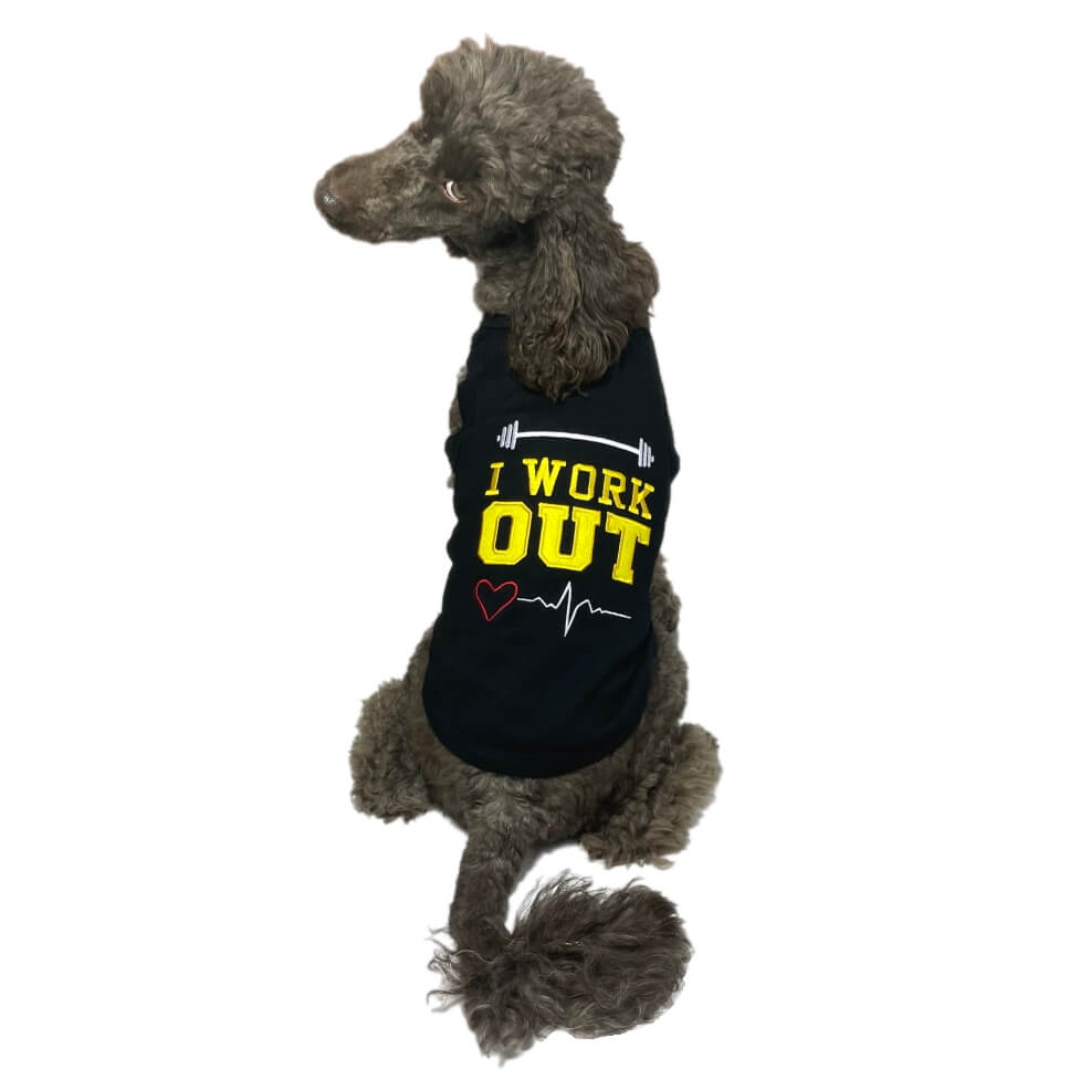 This eye-catching dog shirt features an embroidered barbell and heartbeat line