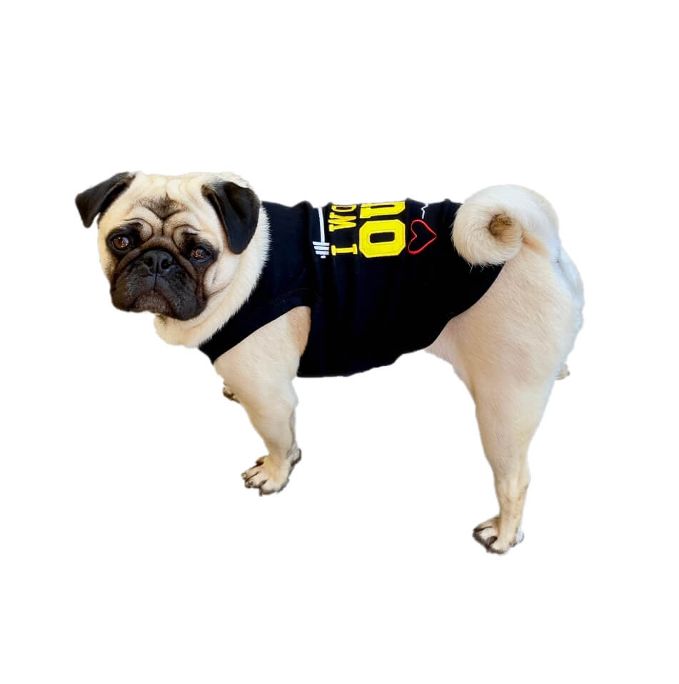This black dog t-shirt is cool and comfortable in 100% cotton