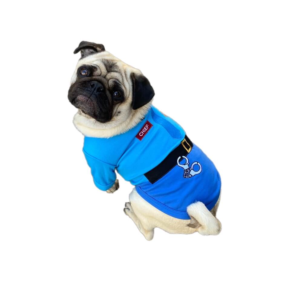 This funny doggie shirt features an embroidered police uniform