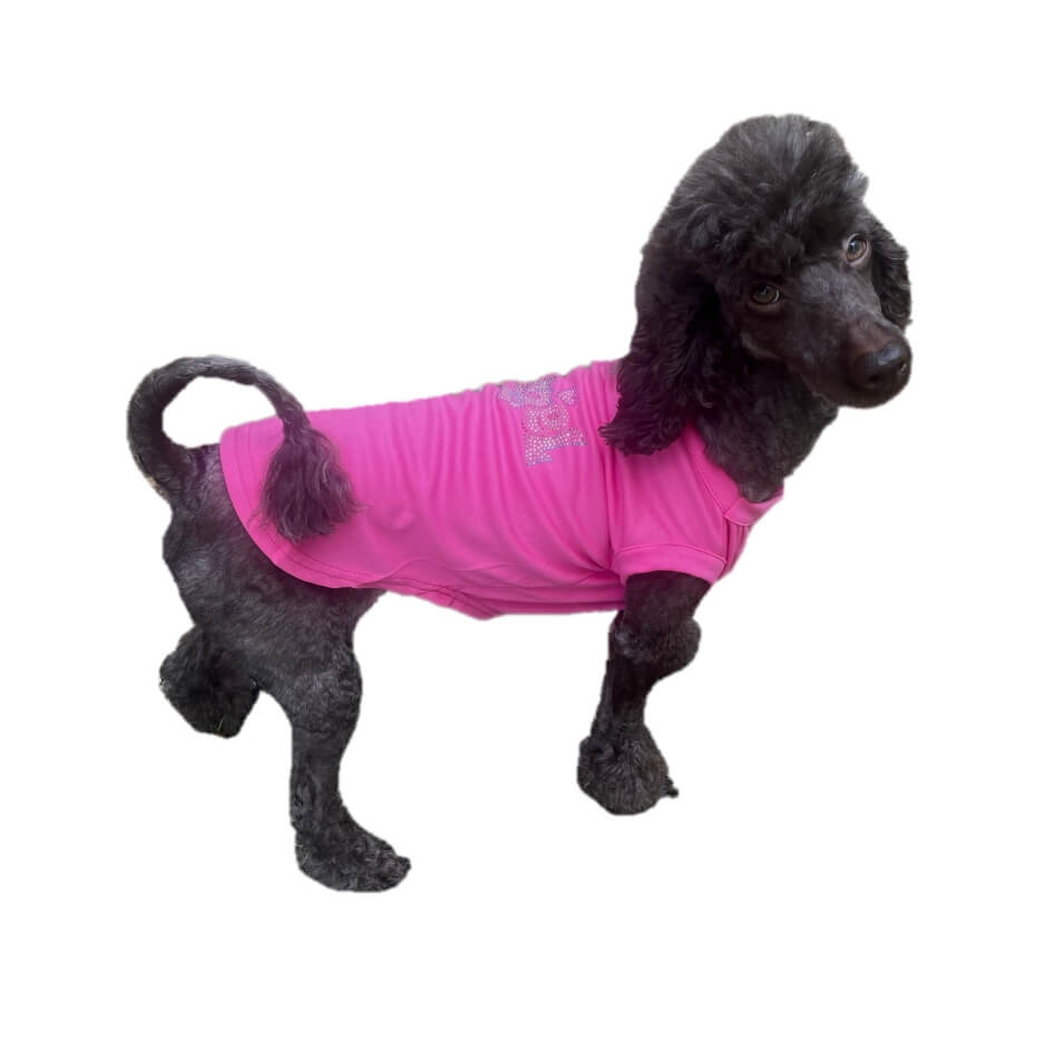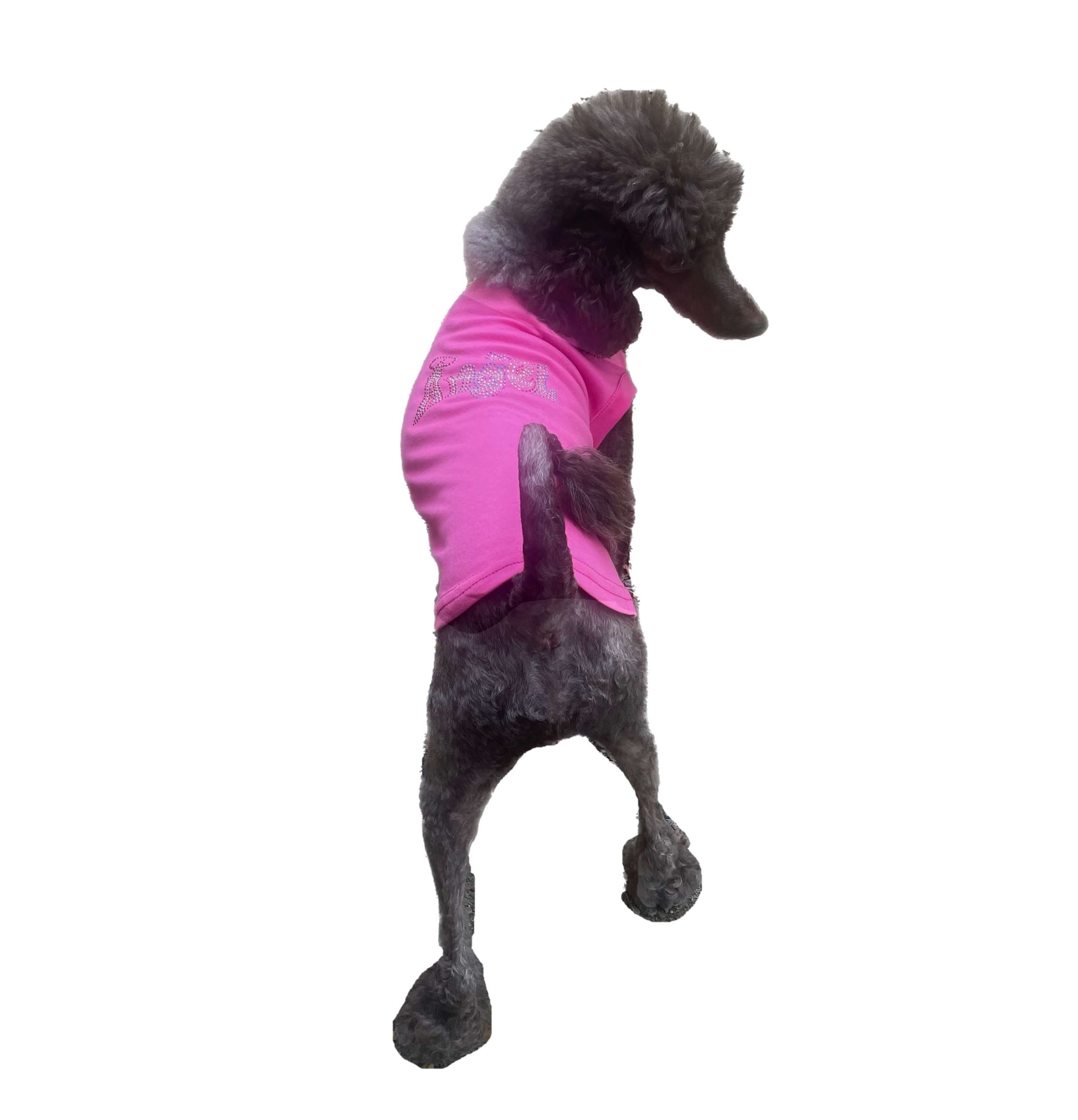Gorgeous hot pink, soft and comfortable dog t-shirt that features an abundance of rhinestones