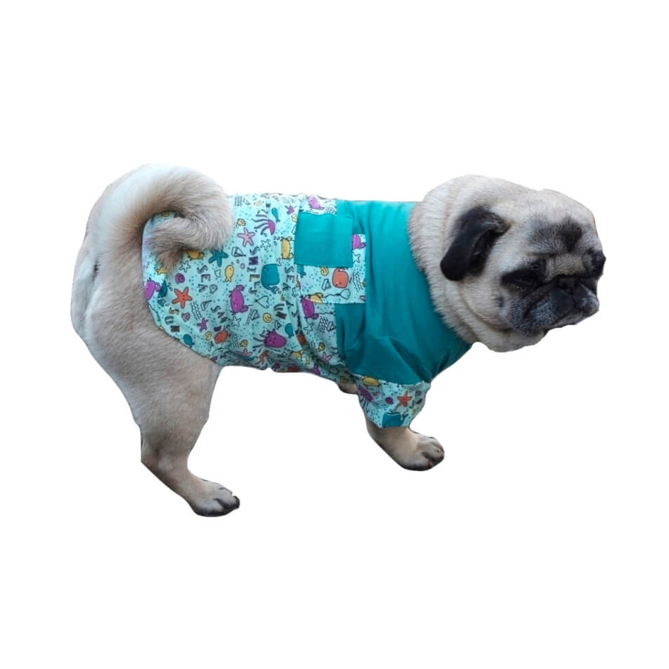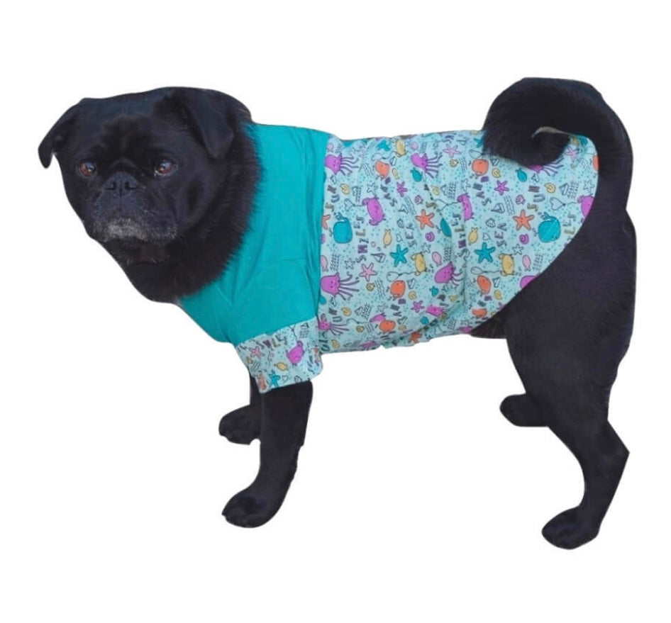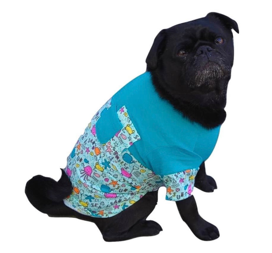 This seaside print dog t-shirt provides UPF 40 sun protection