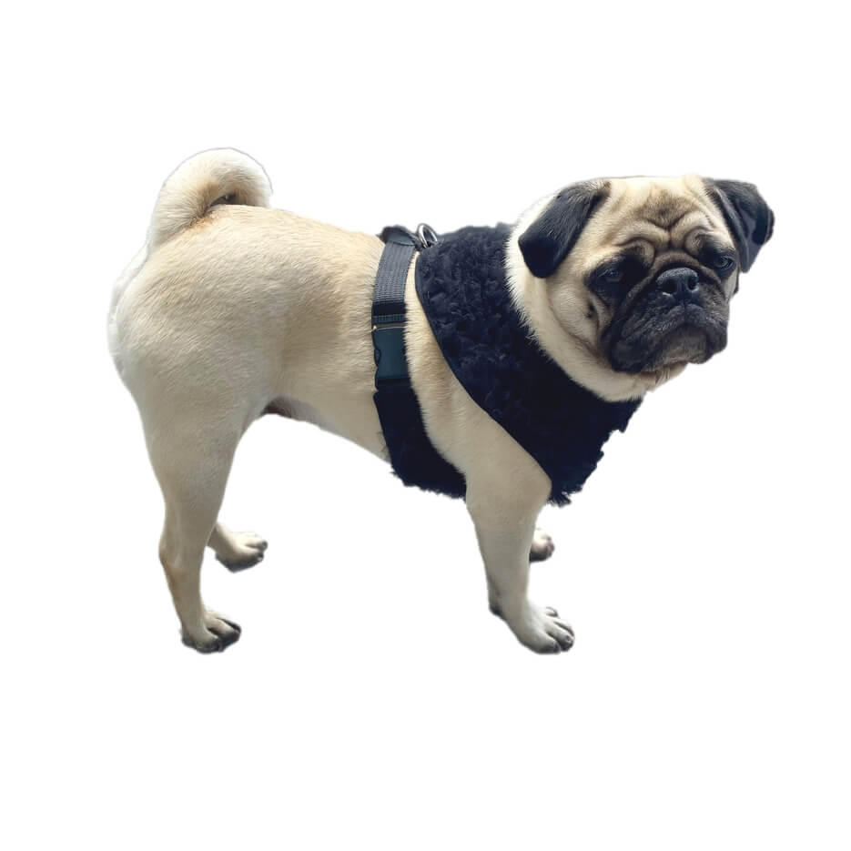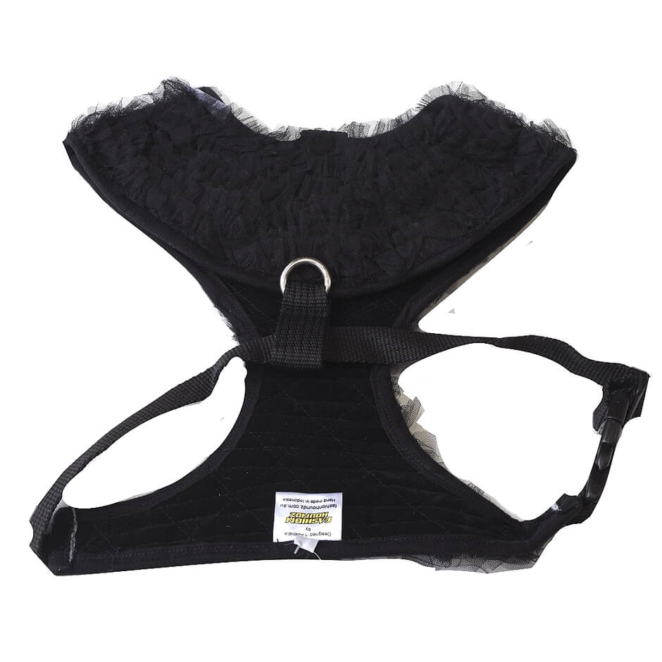 A gorgeous dog harness in a black durable velvet fabric