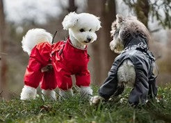 Meet the premium Raincoat Jumpsuit — the full-coverage wet weather essential designed for dogs who refuse to let a little rain ruin their walk. Unlike hooded styles that restrict vision and frustrate your pup, this jumpsuit features a practical high neckline with a drawstring cinch to keep rain out where it matters most. With elastic cuffs at the tail and legs, every gap is sealed so your dog stays warm, dry, and comfortable from nose to tail.